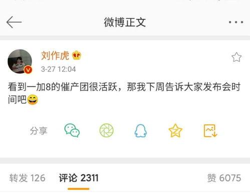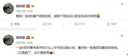最近刘作虎的微博可是炸开了锅!这位手机界的大佬,竟然在微博上爆出了一个大料,让粉丝们兴奋不已。今天,就让我带你一起深入挖掘这个话题,看看刘作虎这次到底说了些什么吧!